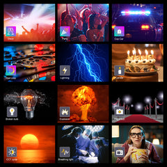 Lightning, CCT Loop, Candlelight, Bad Bulb, TV, Paparazzi, Explosion, Pulse, Disco, Police Car, Party, HUE Loop