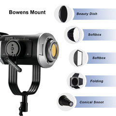 1. The Bowens mount is compatible with various light modulators like softboxes, reflectors, beauty dishes, snoots, umbrellas, and more.Β